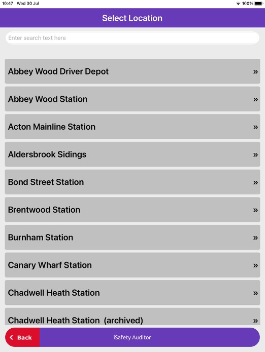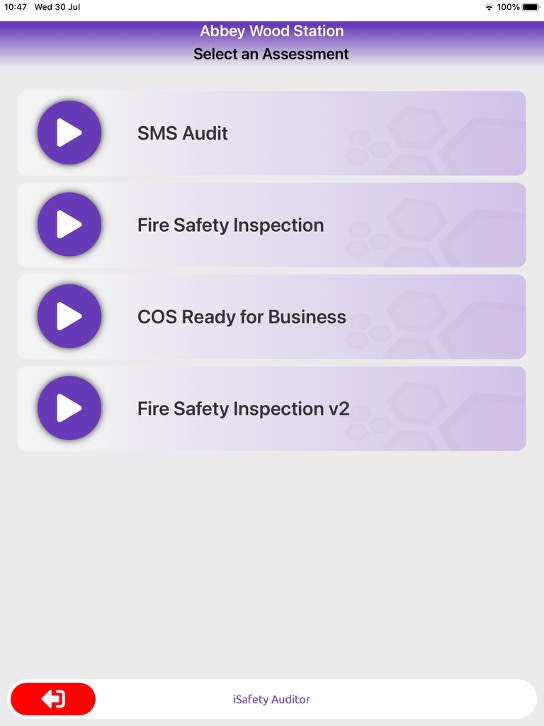 Auditing starts with just a few taps. The assessor simply selects the location from a predefined list within the app. Once a location is chosen, only the relevant audit types for that location are displayed, ensuring accuracy and efficiency.