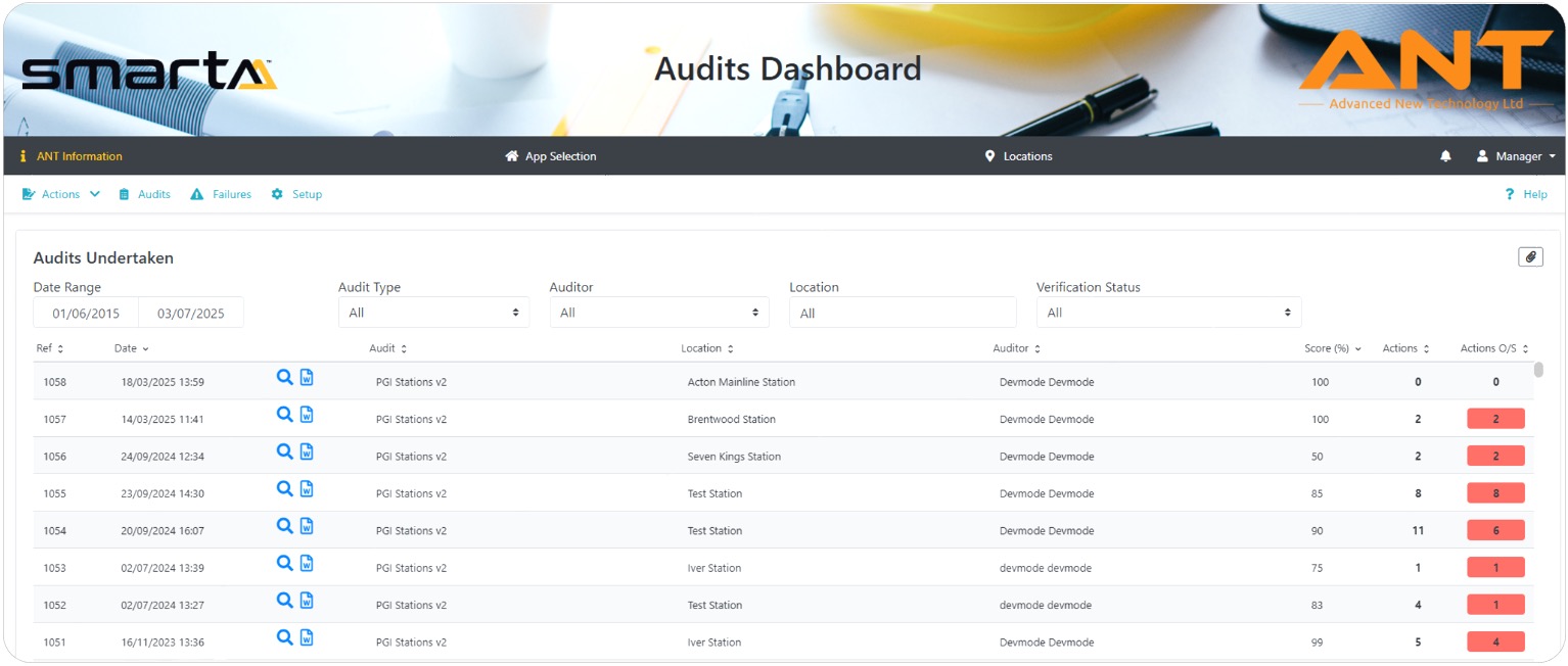 We also use a further app which was specifically created to enable us to undertake our Planned General Inspections and stations, depots, and offices, this allows local managers to complete the inspection on the go at a time that suits them. ANT are a valued partner, supporting us on the journey to end to end running, generous with their expertise and responsive to our needs as a business.’